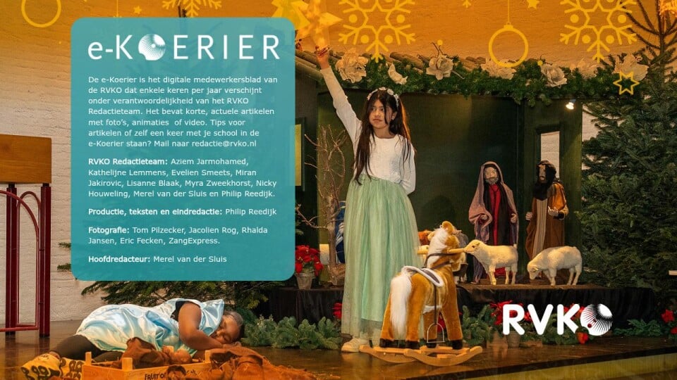 De e-Koerier is het digitale medewerkersblad van de RVKO dat enkele keren per jaar verschijnt onder verantwoordelijkheid van het RVKO Redactieteam. Het bevat korte, actuele artikelen met foto’s, animaties of video. Tips voor artikelen of zelf een keer met je school in de e-Koerier staan? Mail naar redactie@rvko.nl