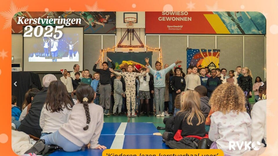 Deze bijzondere periode werd op donderdag 18 december afgesloten met de kerstviering. In onze sfeervol ingerichte gymzaal kwamen de kinderen bij elkaar om te zingen, te dansen en te luisteren naar het kerstverhaal. Het verhaal werd voorgelezen door de groepswinnaars van de voorleeswedstrijd, met daarbij extra aandacht voor schoolwinnaar Sahra.
