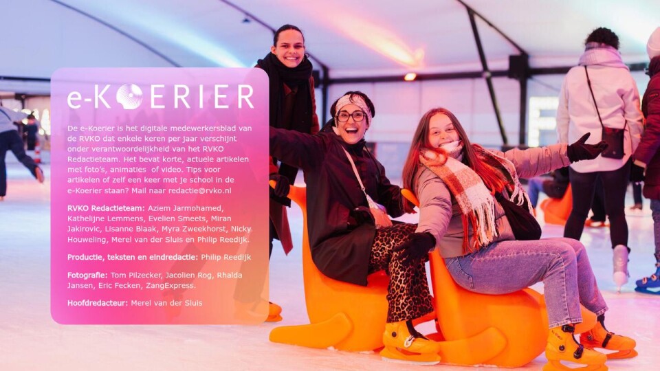 De e-Koerier is het digitale medewerkersblad van de RVKO dat enkele keren per jaar verschijnt onder verantwoordelijkheid van het RVKO Redactieteam. Het bevat korte, actuele artikelen met foto’s, animaties of video. Tips voor artikelen of zelf een keer met je school in de e-Koerier staan? Mail naar redactie@rvko.nl